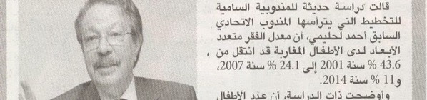 A l’occasion de la Journée Nationale de l’Enfant, célébrée le 25 mai de chaque année, le Haut Commissariat au Plan (HCP) publie une note de synthèse sur les principaux résultats de l’étude conduite sur la pauvreté multidimensionnelle des enfants 2001-2014, qui sera incessamment publiée dans les Cahiers du Plan n° 49.